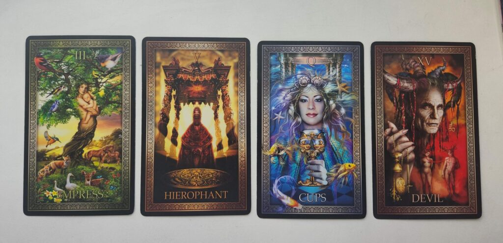 Gift, The Devil. The third Major Arcana card for this week of the lunar eclipse in Virgo. The Devil may seem like an odd gift, but this card offers the opportunity to break away from bonds and limitations. Once you move past those limitations, the Devil encourages you to play, to follow your passions and imagination.