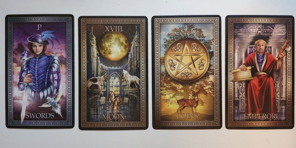 Gift, The Emperor. Another Major Arcana card, this one, in the position of gift, offers you someone with the power to help you create stability and security with the new idea or project, perhaps through financial or marketing advice, or strategies for organizing the work and creating boundaries. Or it may be someone with a legal background who can advise you on contracts related to the new idea.